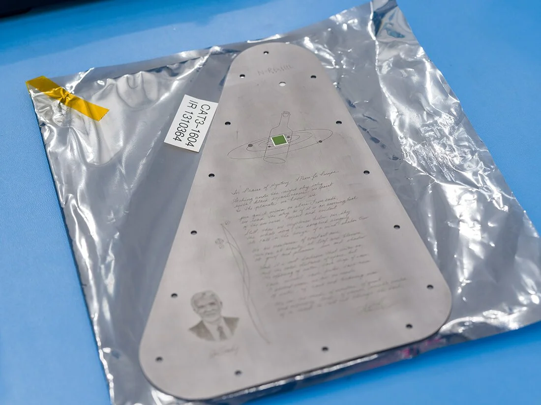 Once and a while a rare opportunity presents itself to create a timeless memento to travel into space alongside our robotic creations. Conceptualized by JPLers Dan Goods and Preston Dyches, the Europa Clipper vault plate carries a message of togetherness to a distant water world. I had the honor of working on the inward facing portion of the vault plate designing the message in a bottle that carries 2.6 million names etched into a small chip of those who signed up to send their name to Jupiter’s moon, Europa.
