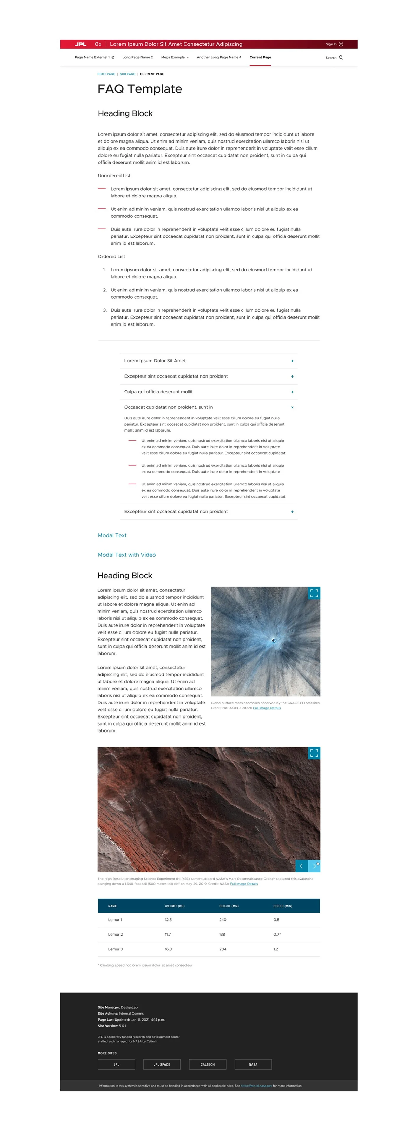 WCP sites use customized blocks from the Explorer 1 Design System, adapted to convey an internal-only look and feel, clearly distinguishing them from public-facing sites and signaling that content may be sensitive. Additional blocks were developed from scratch based on extensive user research to address specific internal needs. Templates were also developed to assist customers in efficiently developing elegant and effective sites on their own.